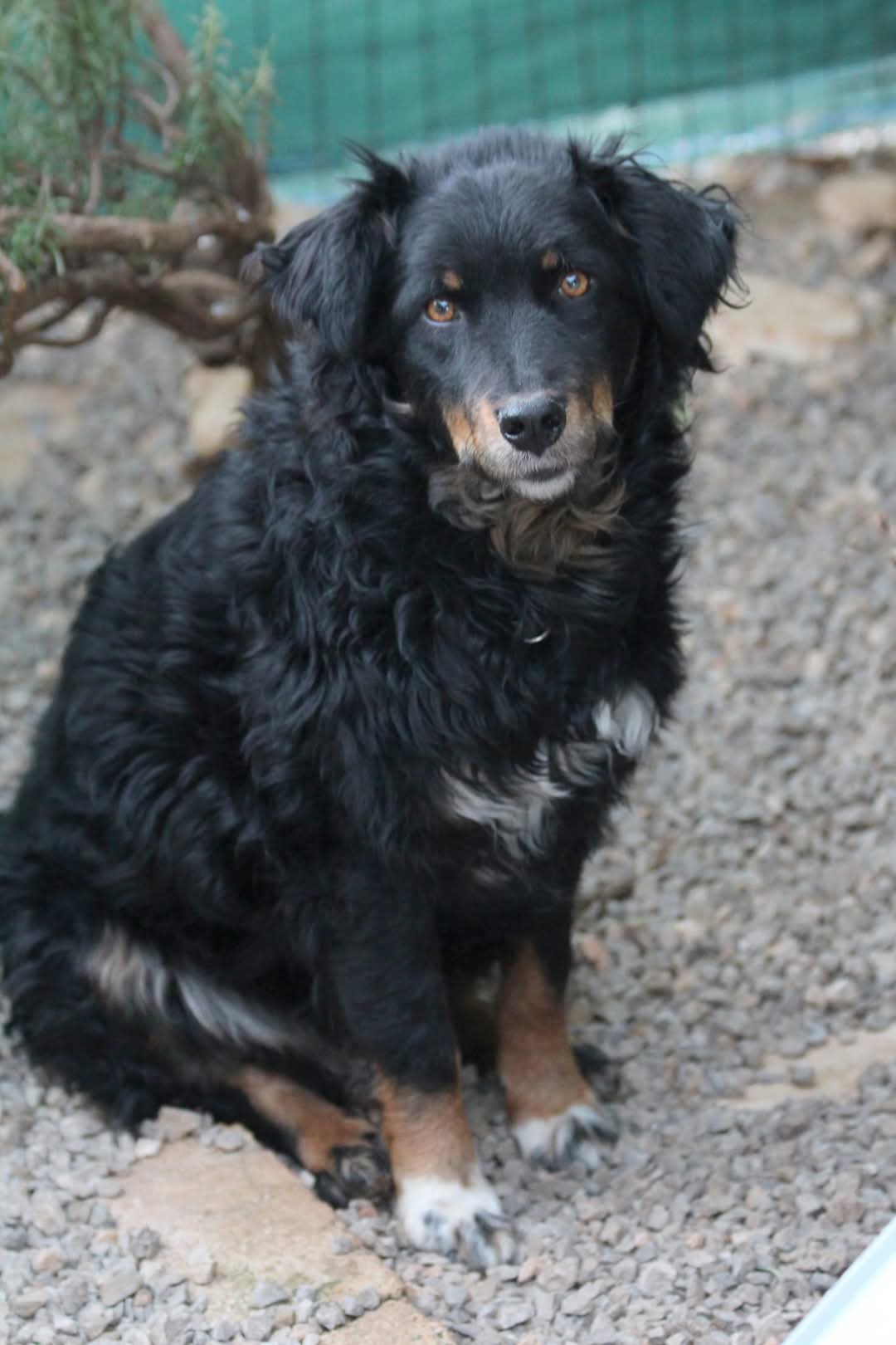 Njezin izgled podsjeća na bernskog planinskog psa, no znatno je manja i lakša – ima 18 kg, visoka je 43 cm, a duga 63 cm. Elegantna, ali čvrsta – spremna biti vjerna pratiteljica na kauču i u prirodi.